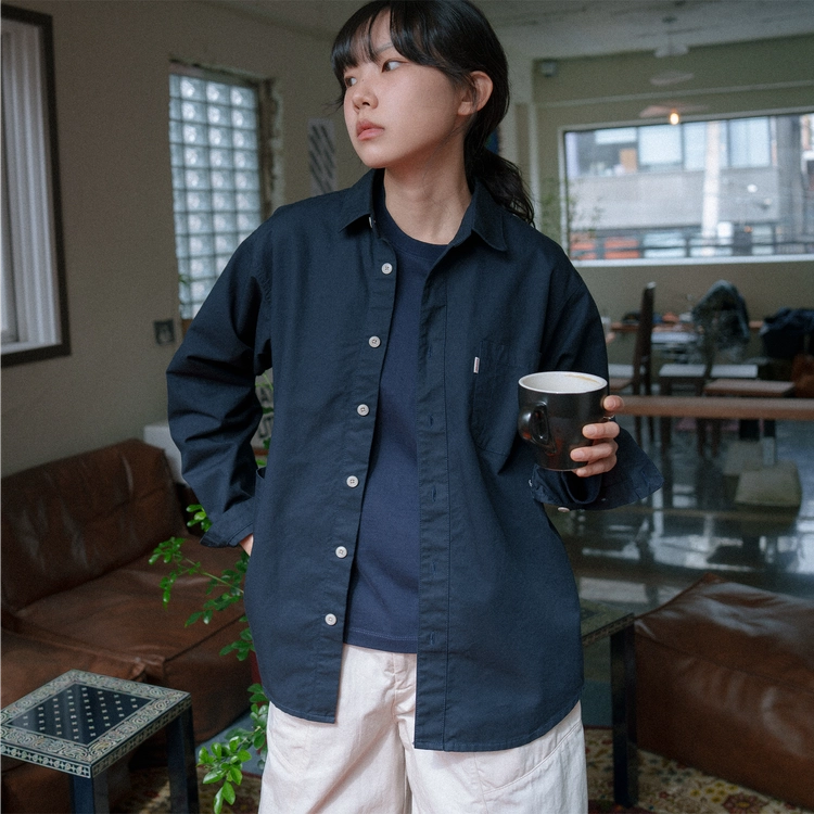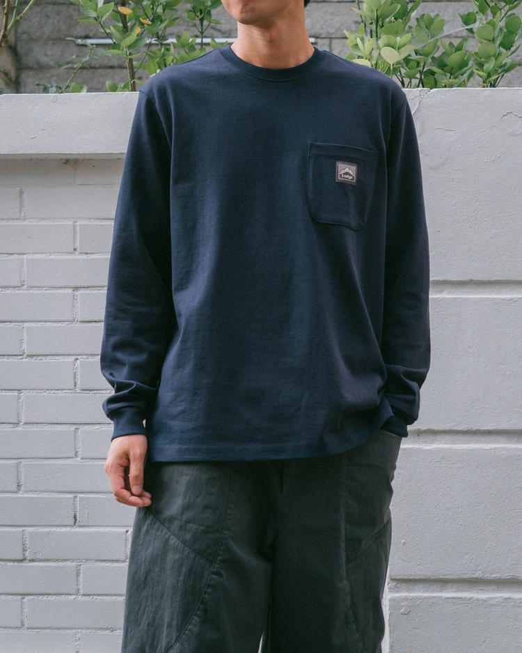 [Lodge] Comfy Long Sleeve Pocket T-Shirts Navy (Unisex)