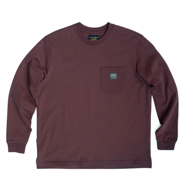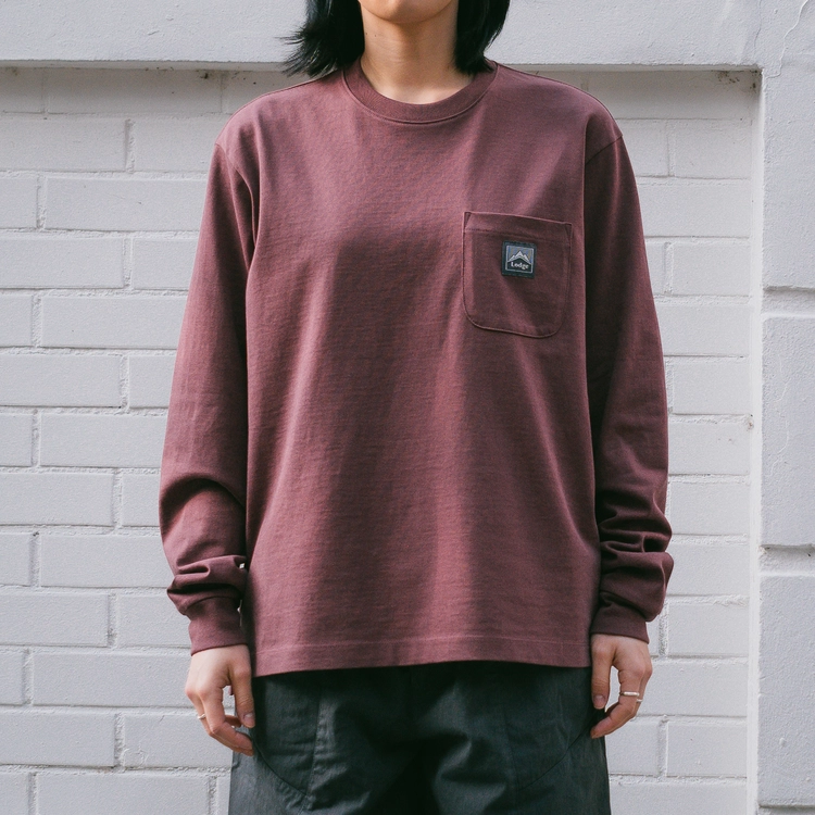 [Lodge] Comfy Long Sleeve Pocket T-Shirts Burgundy (Unisex)
