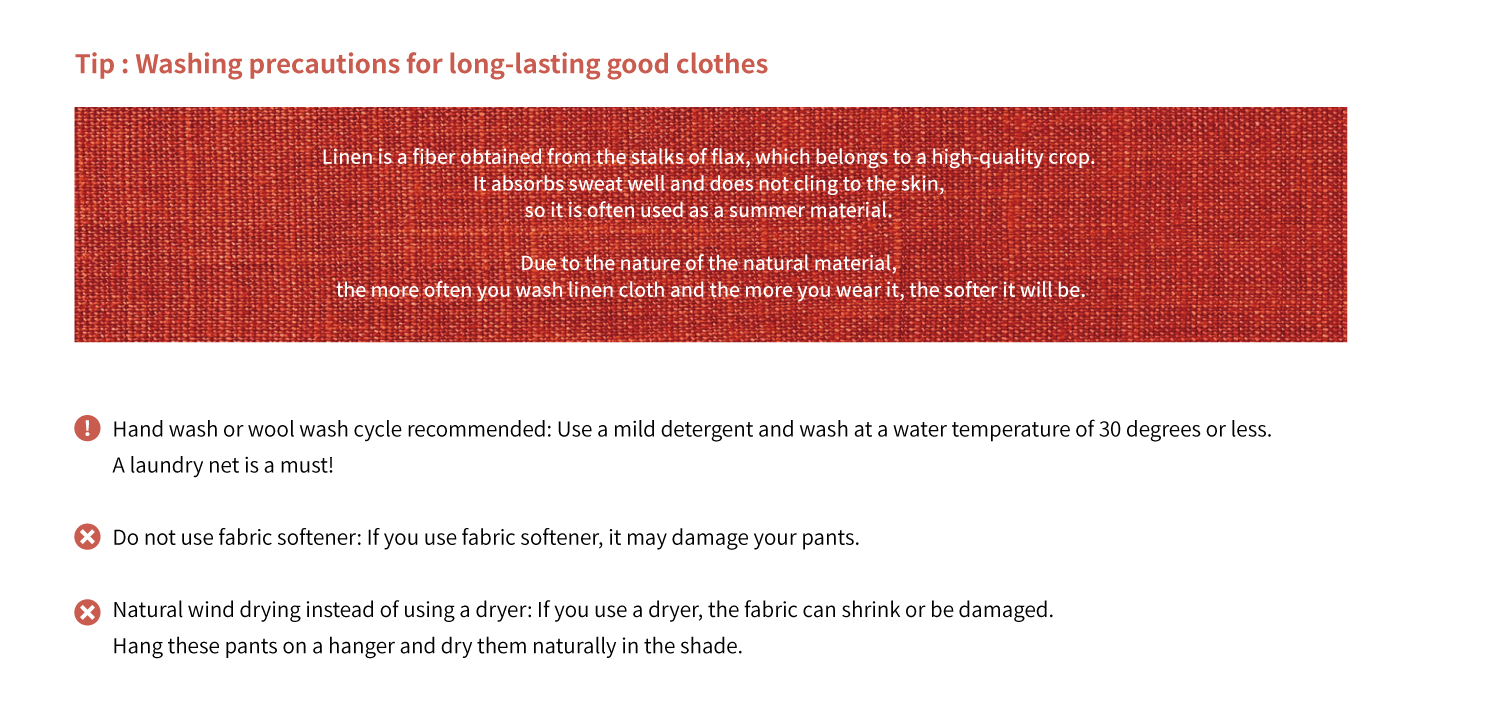 We employ the high-quality fabrics that are woven with pre-dyed 100% linen.