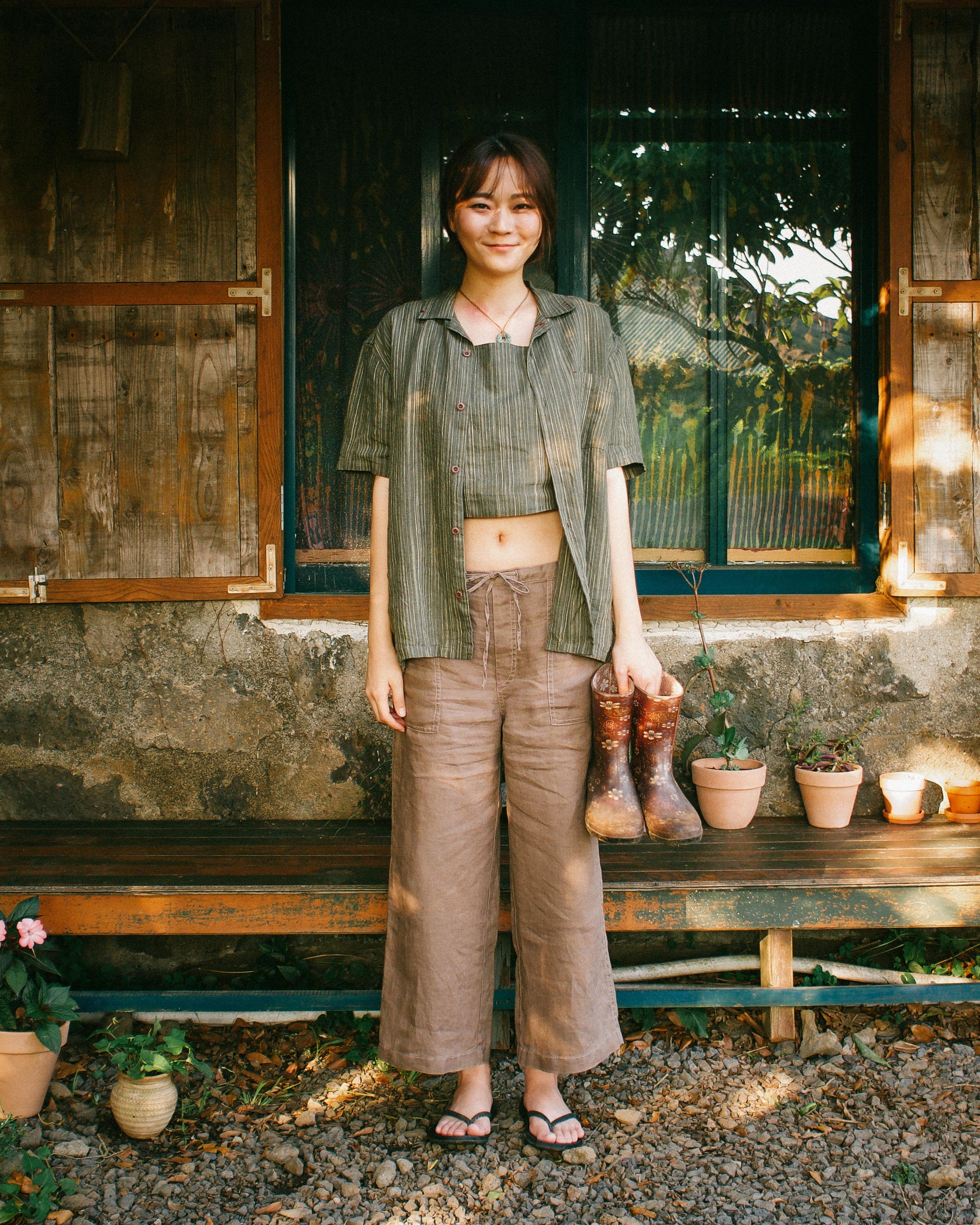 The pre-dyed stripes evoke an air of summer vibe with an image of linen fluttering in the wind.
