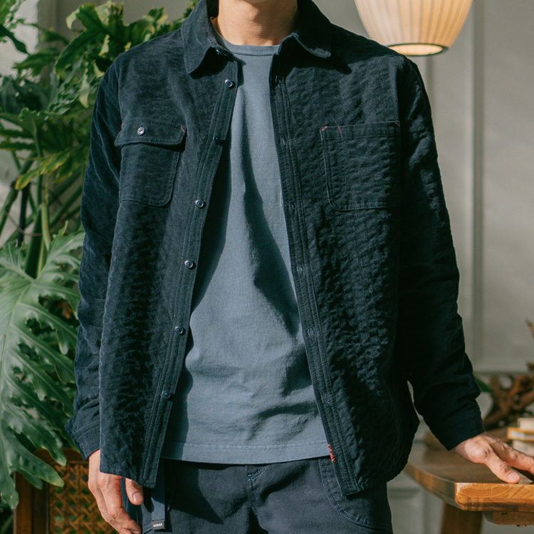 특수 주름가공한 면 100% 골덴 원단으로 제작된 휘게 셔츠. 언제 어디서든 편안하게 착용이 가능하며 활용도가 높습니다.