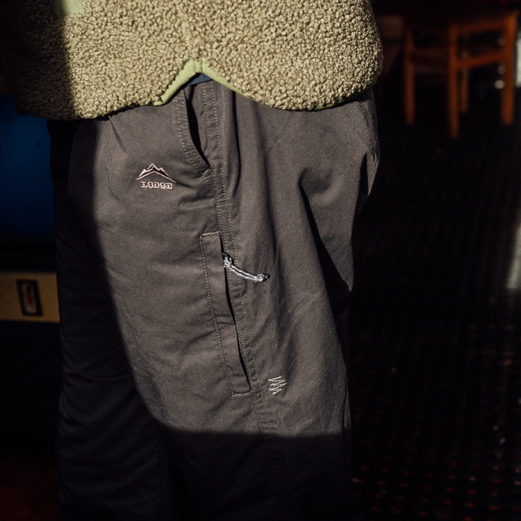 We've added our own wit to the sweatshirt style, which could otherwise be plain, by the Lodge logo embroidered in wine color, a sign X on the elbow, and color stitching along the neckline, armhole line and shoulder line to incorporate the Lodge’s unique atmosphere.